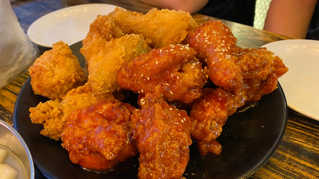 You can’t visit Korea without having tried KFC, aka Korean Fried Chicken. And if you can, you shouldn’t miss the best pairing of chimaek, aka chicken + maekju (beer).