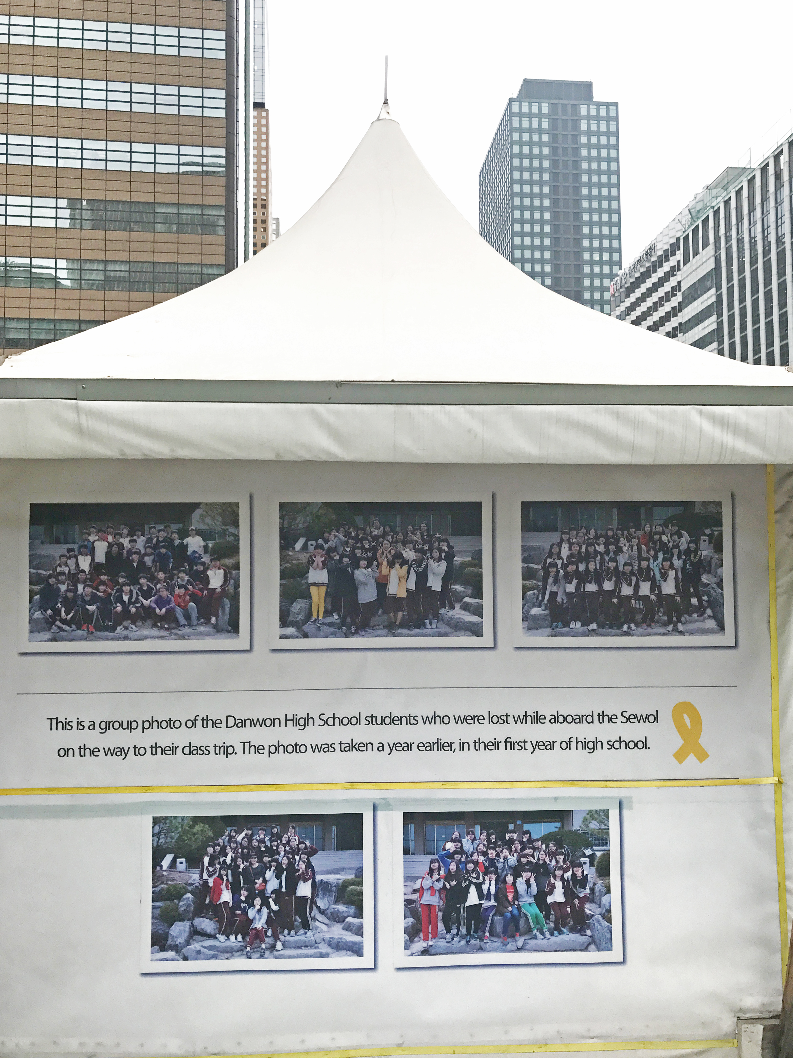 The Seoul city government has unfortunately already removed these memorial tents. What they have done instead is to build a commemorative space at the site.