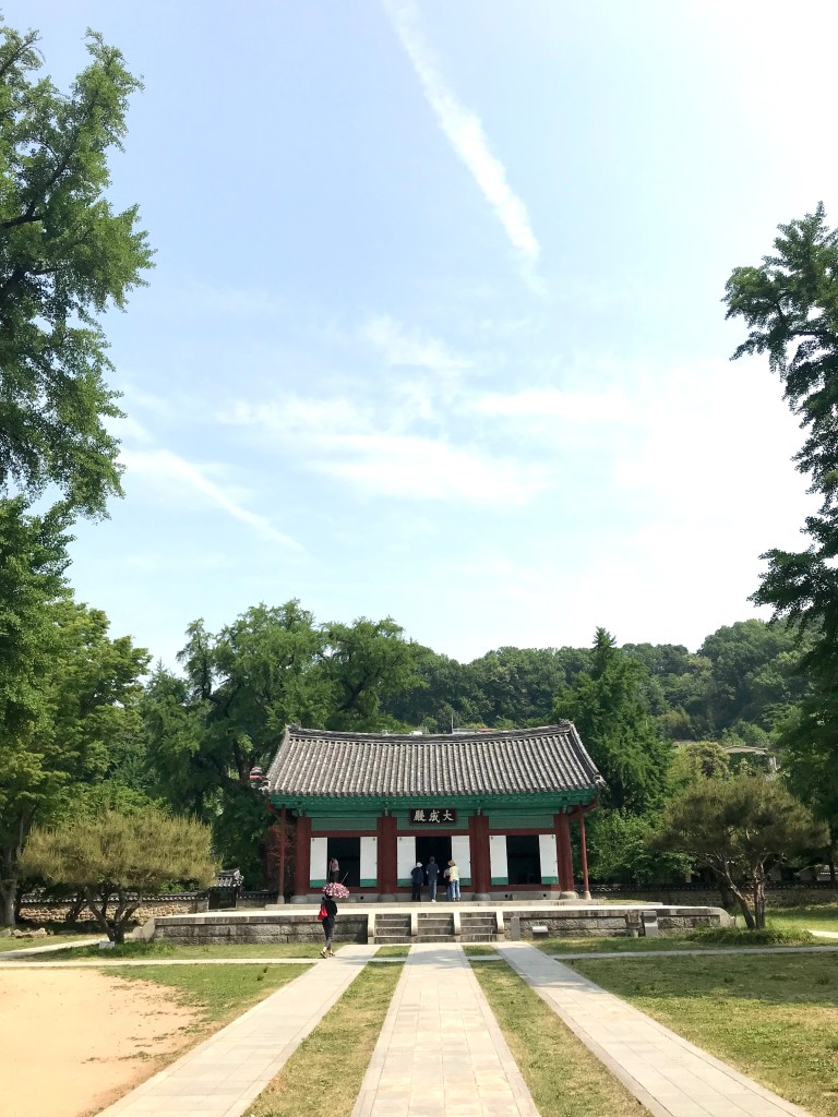 I highly recommend walking up the steps and turning around to get some good photos of the whole compound. Tall gingko trees and leading paths nicely frame the Myeongnyundang for a nice shot.