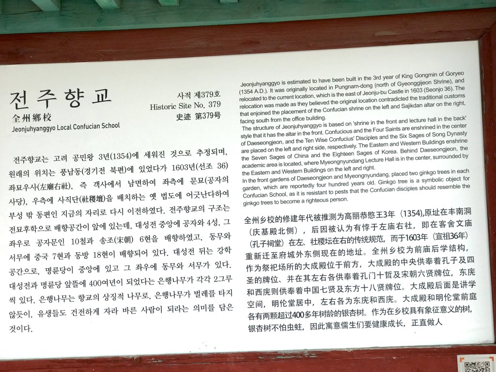 You will also find this signboard here. It tells you more about the history of the Jeonjuhyanggyo Local Confucian School, and what you can expect to see in the school compound: