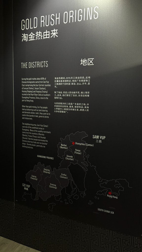 The exhibition, titled Finding Gold: Chinese on the Goldfields of 19th Century Australia is a very interactive and immersive experience. It begins on board a ship sailing from Hong Kong bound for Melbourne and progress through various scenes on a goldfield, including a Cantonese food stall, a tent theatre playing Cantonese Opera, and even a Guan Gong Temple!