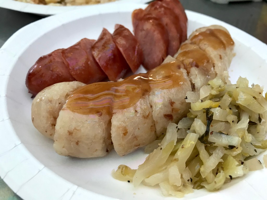 The sausages are actually Da Chang Bao Xiao Chang 大腸包小腸, where the sausage typically goes into the glutinous rice roll, shaped to look like, well, a bigger sausage.
