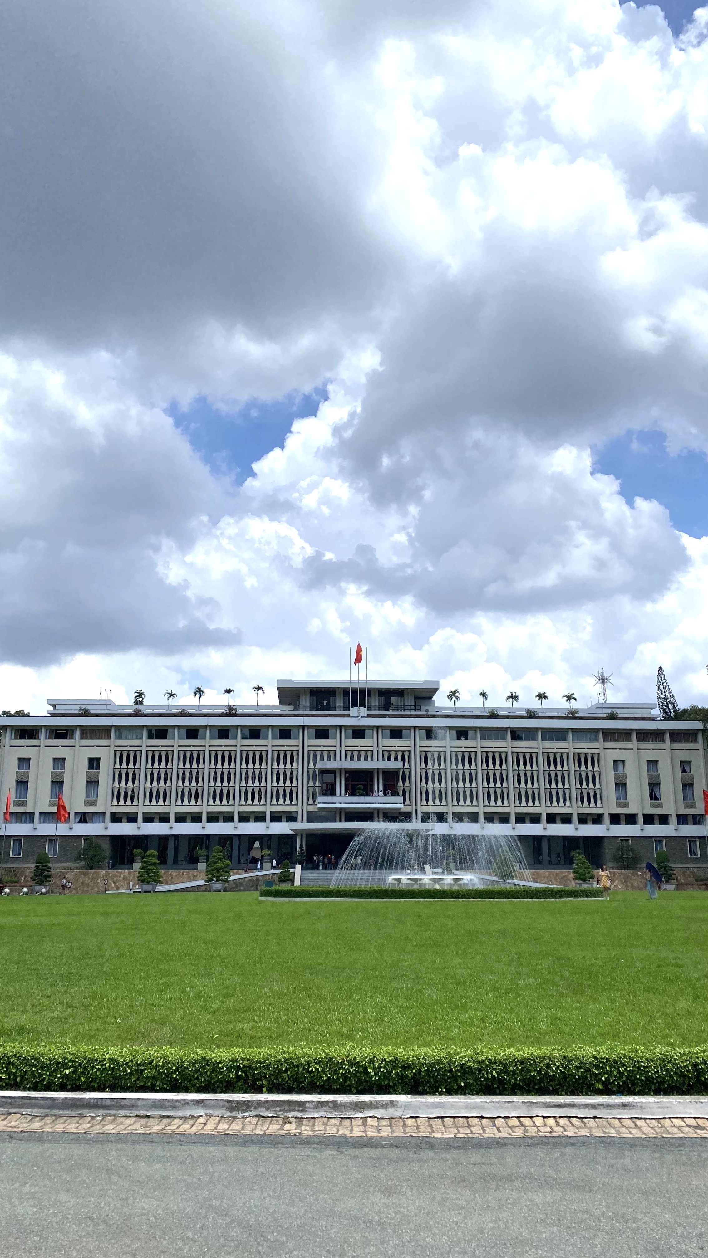 From afar, the palace’s outline feels imposing. It does look like a very stately building, flanked by the fountain and numerous Vietnam flags.