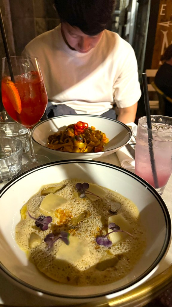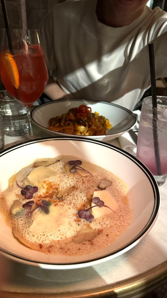 Our placebo cocktails were also very refreshing and delicious. I personally preferred my Sensible Lonsdale (lavender syrup, cucumber, lemon, soda) to my husband’s order of No-Groni (Lyres Italian Orange, Seedlip 0%, Lyres Aperitif Rosso, orange twist). It made me feel much better about not being to order one of their alcoholic options, which I felt would have been a great match with the pastas we ordered.